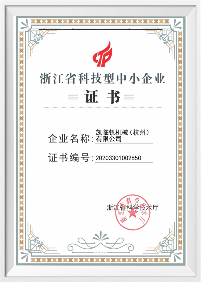 Zhejiang Province Science and Technology Maliit at Medium Enterprise Certificate