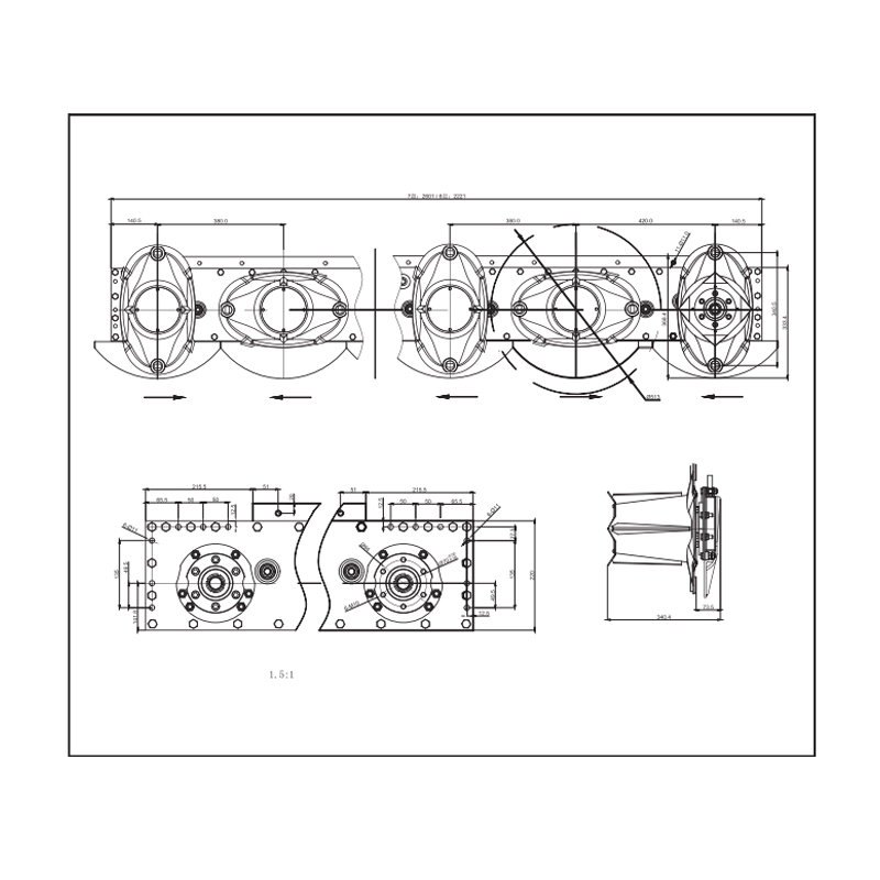 Ang produktong ito ay ginagamit para sa paghahatid ng gearbox cutter beam ng self-propelled lokomotibo at rotary disc lawnmowers. Ito ay nagmula sa mga konsepto ng disenyo ng Europa at Amerikano at kapangyarihan ng input sa pamamagitan ng makina ng lokomotiko. Ang paghahatid ng panlabas na gearbox ay nagtutulak ng cylindrical gear sa ulo ng pamutol. Ang cutter beam ay nagpatibay ng isang buong disenyo ng istraktura ng gear at ang bilis ng output ay 3000 rpm. Ang ingay ng paghahatid ay mababa, at ang kalidad ay mas matatag at maaasahan; Ang cutter bar na ito ay maaaring pagsamahin sa iba't ibang mga modelo upang makabuo ng isang mas malaking lapad. Ang lapad ng nagtatrabaho ay maaaring umabot ng 3.2 metro hanggang 5.5 metro, na umaangkop sa iba't ibang mga pangangailangan. Kasabay nito, ang pag -andar ng damuhan at pag -flattening ay maaari ring maisakatuparan. Ginagamit ito para sa pag -aani ng alfalfa, safflower, at iba pang mga pananim. Ang pag -flatt ng mga tangkay ay makakatulong upang sumipsip ng tubig at ikalat ang mga ito para sa pagpapatayo.